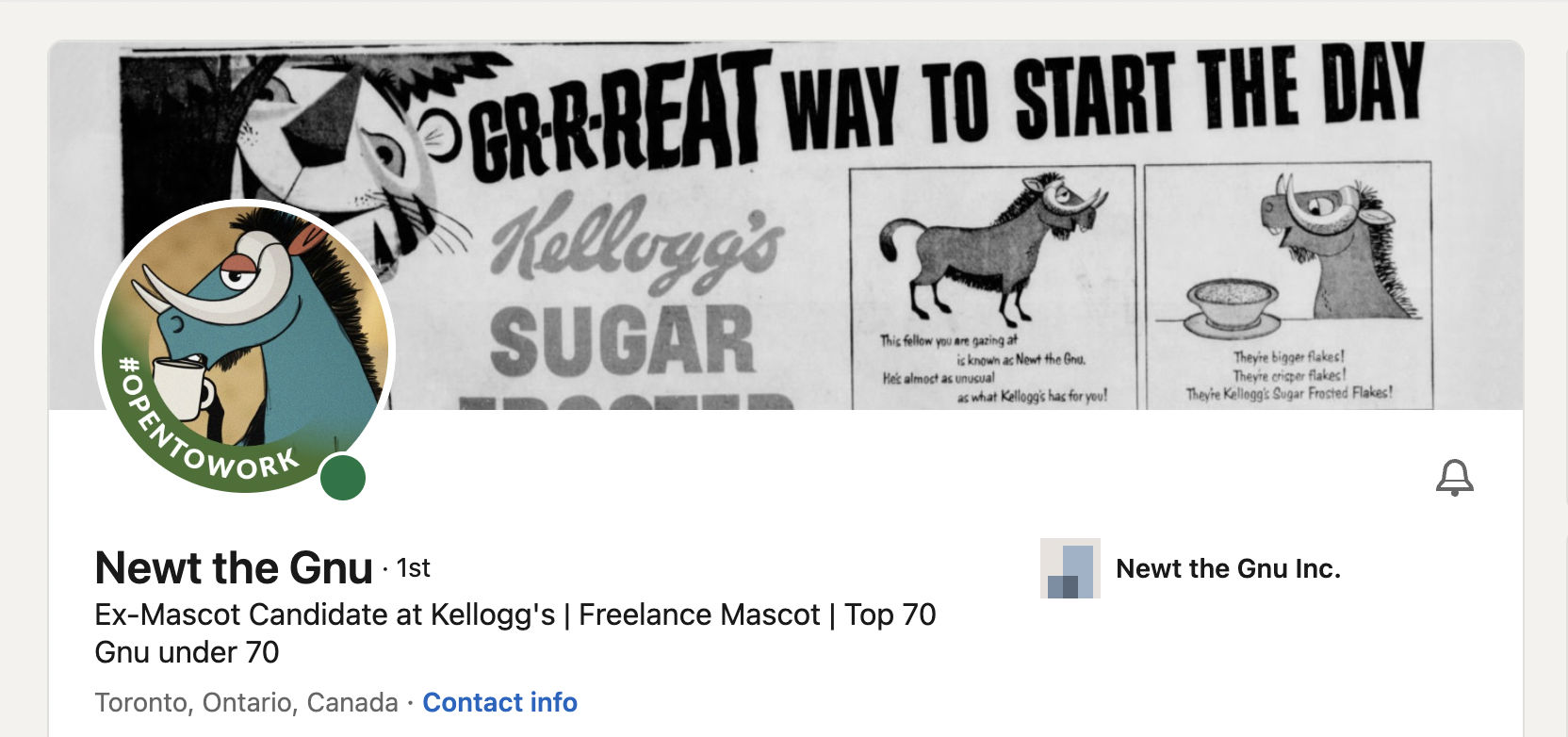 We turned Newt the Gnu into a LinkedIn influencer, reaching Canadian CMO and advertising executives with the message that after 70 years, he was finally #OpenToWork.
